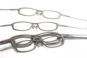よくおでこにメガネをかけたりすると、普通のメガネだと曲がっちゃうんですよね。エスパスはこうして曲げても大丈夫です。