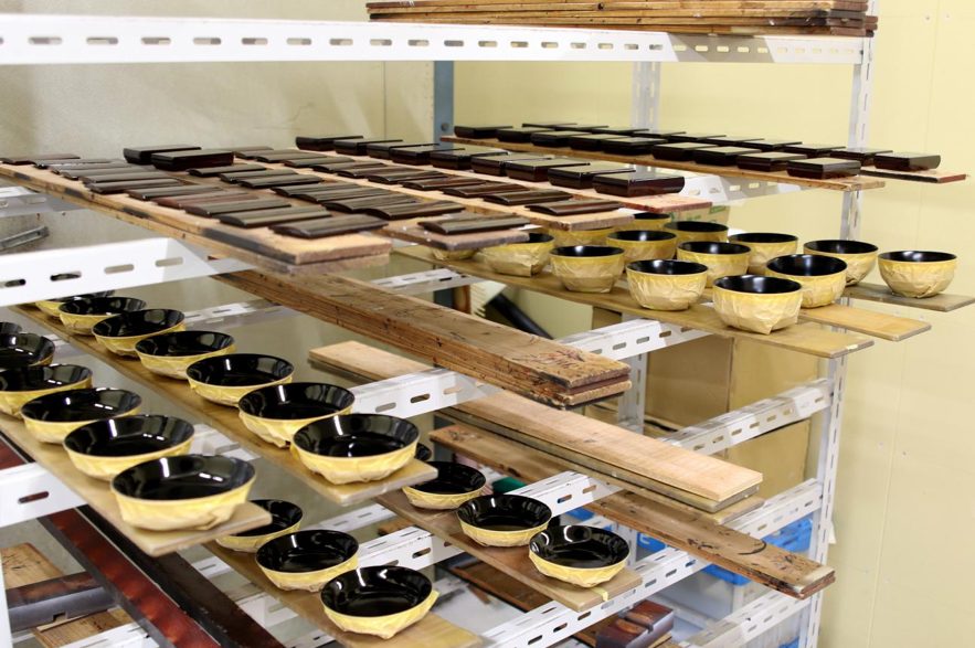 今の河和田の漆産業は樹脂に塗装したもので支えられています。