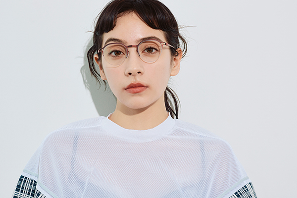 シート状チタンとアセテートで構成されたヒンジレスフレーム。溶接やネジを使用せずにアセテートのリムをチタンに組み合わせました。顔の印象を柔らかくみせる「ボストン」タイプ。軽量でストレスを感じないかけごこちが特徴です。